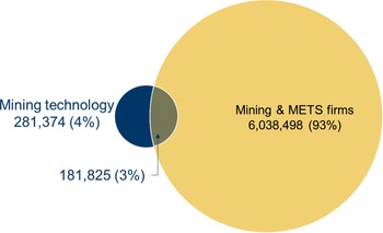 The understanding of mining innovation and the recent surge using patent data entails going beyond the patenting activity of mining firms, but also going beyond patents in the mining sector. There are well-known challenges in defining mining industry innovation using only a technological approach to patent data (European Commission, 2016; Reference FrancisFrancis, 2015; INAPI, 2010). These challenges include defining the non-core mining industries and deciding how much they contribute to the definition of mining. However, it is necessary to define mining technologies because mining firms also appear to innovate in industries other than mining, and therefore have patents in other technology areas. Moreover, mining innovation is also done by METS firms, making it challenging to rely on mining firms alone to define mining innovation.