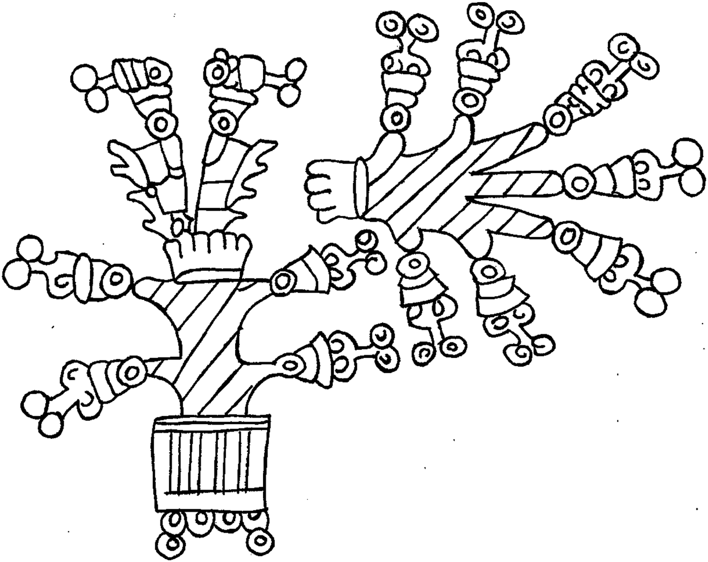 Figure 2. The broken tree of the Codex Borbonicus, Plate 15. Drawing by author (after image at http://www.famsi.org/research/graz/borbonicus/img_page13.html).