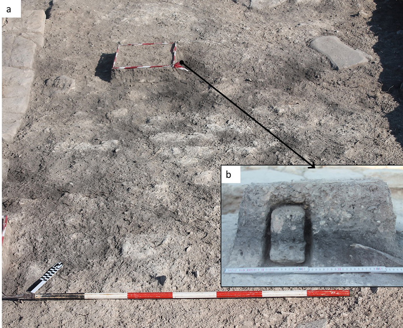 This is characterised by the collapse of internal wall plaster, followed by the erosion of mud-brick walls and roofing structures, and by the collapse of stone wall bases (Figure 2a). This natural degradation process is attested principally in buildings in the residential area (Figure 3), where slow burial of the structures affected the preservation of the underlying occupation deposits. Micromorphological analysis revealed the occurrence of disturbance by roots and faunal activity in occupation deposits. Stratigraphic analysis indicates the almost complete absence of vessels and tools on the occupation floors.