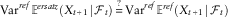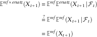$$\eqalignno{ {\Bbb E}^{{ref{\times}ersatz}} \left( {X_{{t{\plus}1}} } \right)\,{\equals}\, & {\Bbb E}^{{ref}} {\Bbb E}^{{ersatz}} \left( {X_{{t{\plus}1}} \!\mid\!{\cal F}_{t} } \right) \cr \mathop{{\equals\,}}\limits^{\,?\,} & {\Bbb E}^{{ref}} {\Bbb E}^{{ref}} \left( {X_{{t{\plus}1}} \!\mid\!{\cal F}_{t} } \right) \cr {\equals\,} & {\Bbb E}^{{ref}} \left( {X_{{t{\plus}1}} } \right) $$