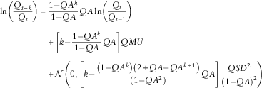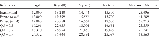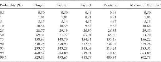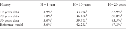 Table 11 shows the average variance of the ersatz scenarios, that is, the conditional variance for log of the index ln Q t+h for various histories t∈{10, 20, 50}. In the limit as t ↑ ∞, the ersatz parameters converge to the reference parameters.