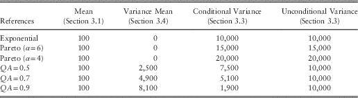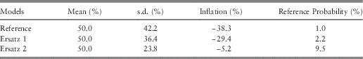 ∙ The first ersatz distribution has the conditional variance equal to the average ersatz model calibrated to 20 years’ data, also in Table 11.