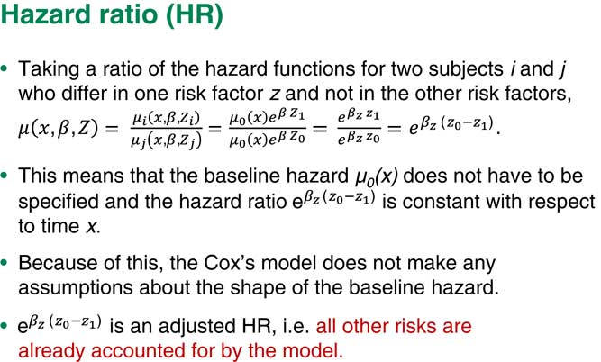 Another important point here is that because we also put various other factors into the model, our term corresponding to the factor Z is a so-called adjusted hazard ratio. That means that this is a hazard ratio, given that all other risks are already adjusted for and already accounted for by the model.