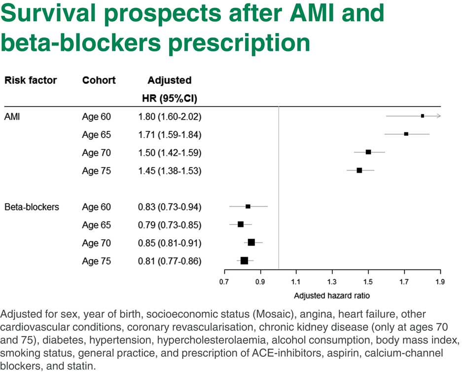 Figure 5 Survival prospects after Acute Myocardial Infarction (AMI) and beta-blockers prescription