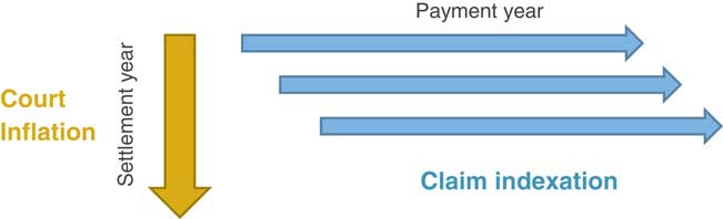 So far we have described the payments in real terms at the point of settlement. In practice, payments are index linked in nominal terms. The Courts Act 2003 originally allowed for payments to inflate annually, in line with the RPI index. This would allow insurers to match the liability by purchase of an RPI-linked annuity or other RPI-linked assets. Since the Thompstone case (Court of Appeal, 2008) where this feature was successfully challenged, wage-based indices can be used instead. A number of indices have since been used. This made PPOs more desirable, as wages should be a better proxy for inflation of the care costs, which in the past have typically increased faster than prices.