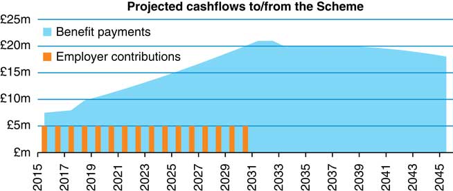 ∙ The scheme is in a very unusual position, where the downside risk to members is greater at the outset than it is in the future, unless the funding level improves such that benefits materially in excess of PPF levels could be secured.