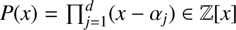 $P(x)=\prod _{j=1}^d(x-\alpha _j)\in \mathbb Z[x]$