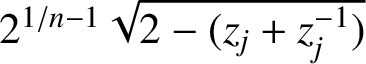 $2^{1/n - 1} \sqrt {2- \smash [b]{(z_j+z_j^{-1})}}$