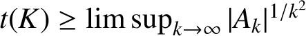 $t(K)\ge \limsup _{k\to \infty }|A_k|^{1/k^2}$