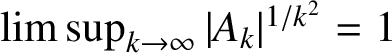 $\limsup _{k\to \infty }|A_k|^{1/k^2}=1$