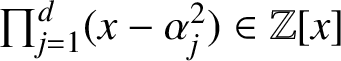 $\prod _{j=1}^d(x-\alpha _j^2)\in \mathbb Z[x]$