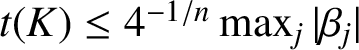 $t(K)\le 4^{-1/n}\max _j|\beta _j|$
