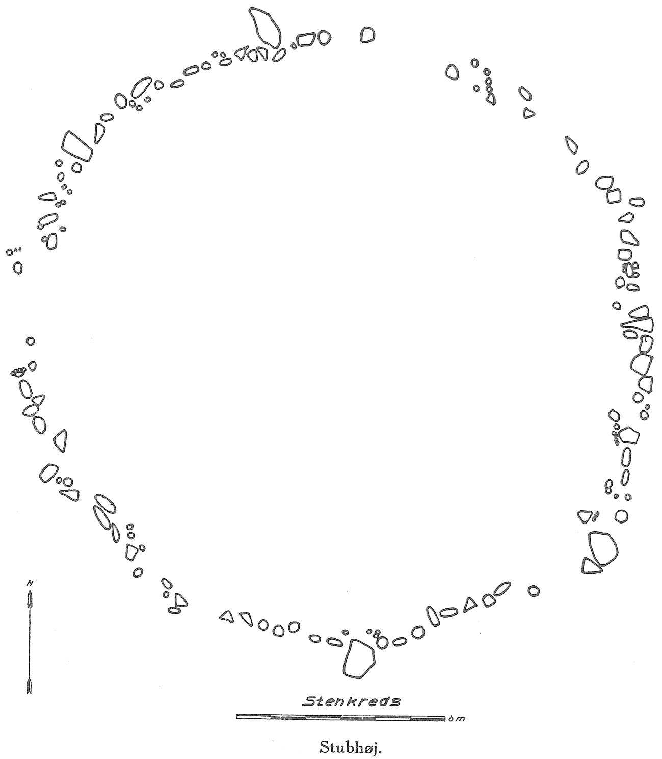 Figure 6. Drawing of the F.19/A.L.29 Stubhøj at Hunn, eastern Norway, during excavation with the kerbstones in situ. (From Laursen Reference Laursen1951, 144.)