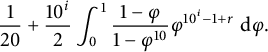 $$ \begin{align} \frac{1}{20}+\frac{10^i}{2}\int_0^1\frac{1-\varphi}{1-\varphi^{10}}\varphi^{10^i-1+r}\,\,\mathrm{d}\varphi. \end{align} $$