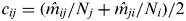 $c_{ij}= (\hat m_{ij} /N_j+ \hat m_{ji} /N_i )/2$