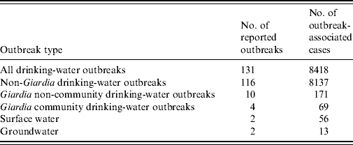 Table 1. Drinking-water-associated outbreaks, USA, 1997–2006