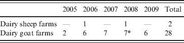 Table 1. Number of dairy goat and dairy sheep farms with confirmed Q fever abortions