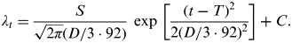 We modelled the mean instantaneous incidence rate λ t at time t (measured in weeks) as the sum of a Gaussian function representing the epidemic component and a time-invariant constant representing the endemic component of the weekly incidence rate: