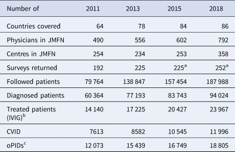 Table 1. JMFN surveys and data on patients with PIDs over time [Reference Modell41–Reference Modell44]