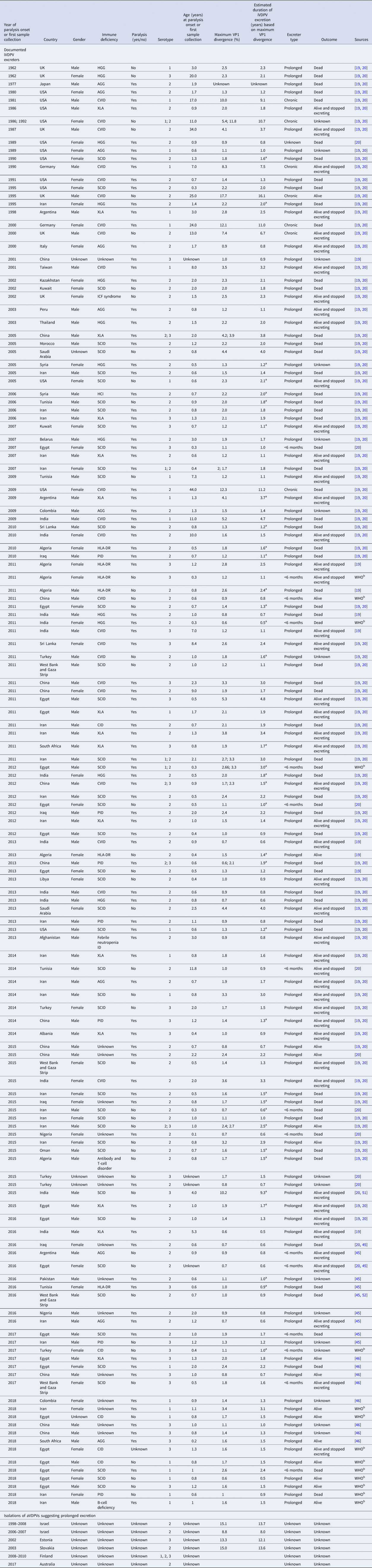 Table 3. Documented iVDPV excreters and isolations of aVDPVs suggesting prolonged excretion for 1962–2018 (as reported by mid-2019)