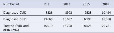 Table 4. Diagnosed CVID and oPID prevalence in the model