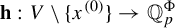 ${\mathbf {h}}: V\setminus \{x^{(0)}\}\to {\mathbb Q}_p^{\Phi }$
