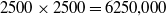 $2500\times 2500= \text{6250,000} $, 20 particles per cell.