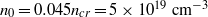 ${n}_{0} = 0. 045{n}_{cr} = 5\times 1{0}^{19} ~{\mathrm{cm} }^{- 3} $, where  ${n}_{cr} = {m}_{e} {\omega }^{2} / (4\mathrm{\pi} {e}^{2} )$. The cell size was