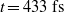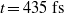 $t= 435~\mathrm{fs} $, the angle of observation is  $\mathop{[0{\unicode{x2013}} 20] }\nolimits ^{\circ } $.