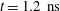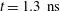 $t=1\mbox{--}1.3~ {\rm ns}$