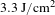 $3.3~\text{J}/\text{cm}^{2}$