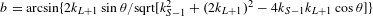 $b=\arcsin \{2k_{L+1}\sin \unicode[STIX]{x1D703}/\text{sqrt}[k_{S-1}^{2}+(2k_{L+1})^{2}-4k_{S-1}k_{L+1}\cos \unicode[STIX]{x1D703}]\}$