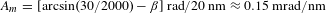 $A_{m}=[\arcsin (30/2000)-\unicode[STIX]{x1D6FD}]~\text{rad}/20~\text{nm}\approx 0.15~\text{mrad}/\text{nm}$