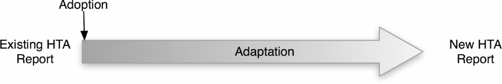 Partners’ Meeting, London June 2006. The output from this meeting was a description of the group's discussions. The partnership agreed that making use of all or part of a report from elsewhere could be done in a wide range of ways. It was agreed that: “There is a spectrum ‘of adaptation’; (Figure 1), with progressively more of the original report being used, affording the possibility of saving time and money through reduced duplication.” Additionally, the group described a distinction between adaptation and adoption, which is illustrated as follows: (i) Summarizing: translation of the summary and use of this for background information; (ii) Updating searches: use of the original search strategy to identify any more recent evidence or adding to the search strategy and extending it; (iii) Adapting: the systematic extraction of relevant HTA information from an existing report (from a whole report or from part of a report); and (iv) Adopting: making use of the report without making any changes (except perhaps translation into users’ own language).