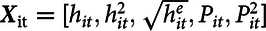 $${\textbf{X}_{{\rm{it}}}} = [{h_{it}},h_{it}^2,\sqrt {h_{it}^e} ,{P_{it}},P_{it}^2]$$