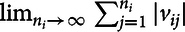 $\lim _{n_{i}\rightarrow \infty } \sum _{j=1}^{n_{i}}|v_{ij}|$