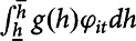 $\int _{\underline{h}}^{\overline{h}}g(h)\varphi _{it}dh$