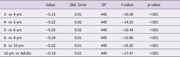 Table 2. Age effect (contrasts) in Mean Path analysis