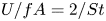 $U/fA = 2/St$ for a rectangular lattice of plates at