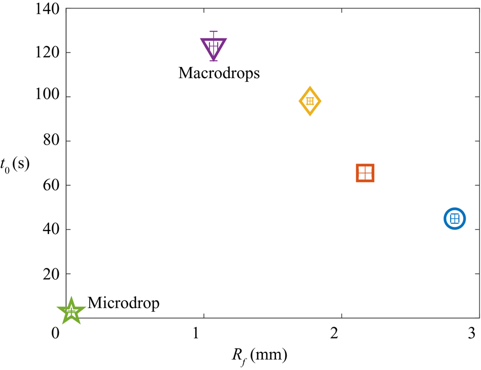 $39\ \mathrm {\mu }\textrm {m} < R_f < 1\ \textrm {mm}$. For macrodroplets (