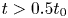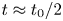 $t=t_0$ is the instant when the droplet detaches from the oil surface (end of stage 3). The oscillations during stage 1 correspond to bouncing of the droplet after impact.