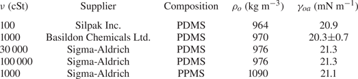 Table 1. Physical properties of the silicone oils used in experiments. All quantities are quoted from suppliers, with the exception of the surface tension