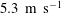 $5.3~\text{m}~\text{s}^{-1}$