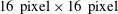$16~\text{pixel}\times 16~\text{pixel}$