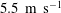 $5.5~\text{m}~\text{s}^{-1}$