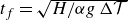 $t_f = \sqrt {{H}/{\alpha g\, \Delta {\mathcal{T}}}}$