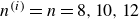$n=8, 10, 12$