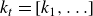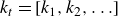 $k_t=[k_1, k_2, \ldots ]$
