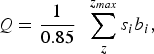 $$Q = \displaystyle{1 \over {0.85}}\; \; \mathop \sum \limits_z^{z_{max}} s_ib_i, $$