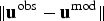 $ \Vert {\bf u}^{\rm obs} - {\bf u}^{\rm mod}\Vert $